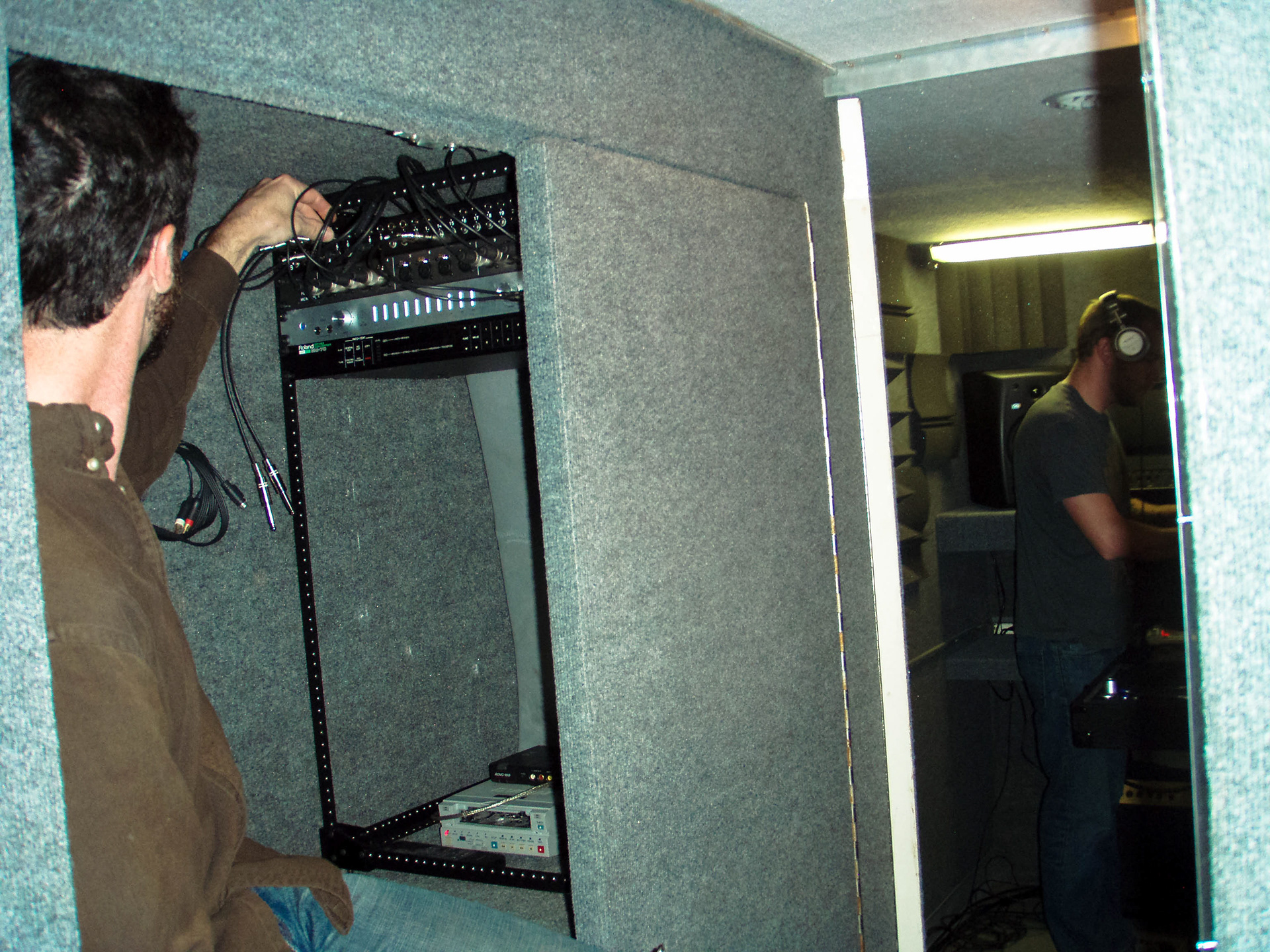 Here you see the patch bays in use, routing signals from the rear booth into the A/D converter.