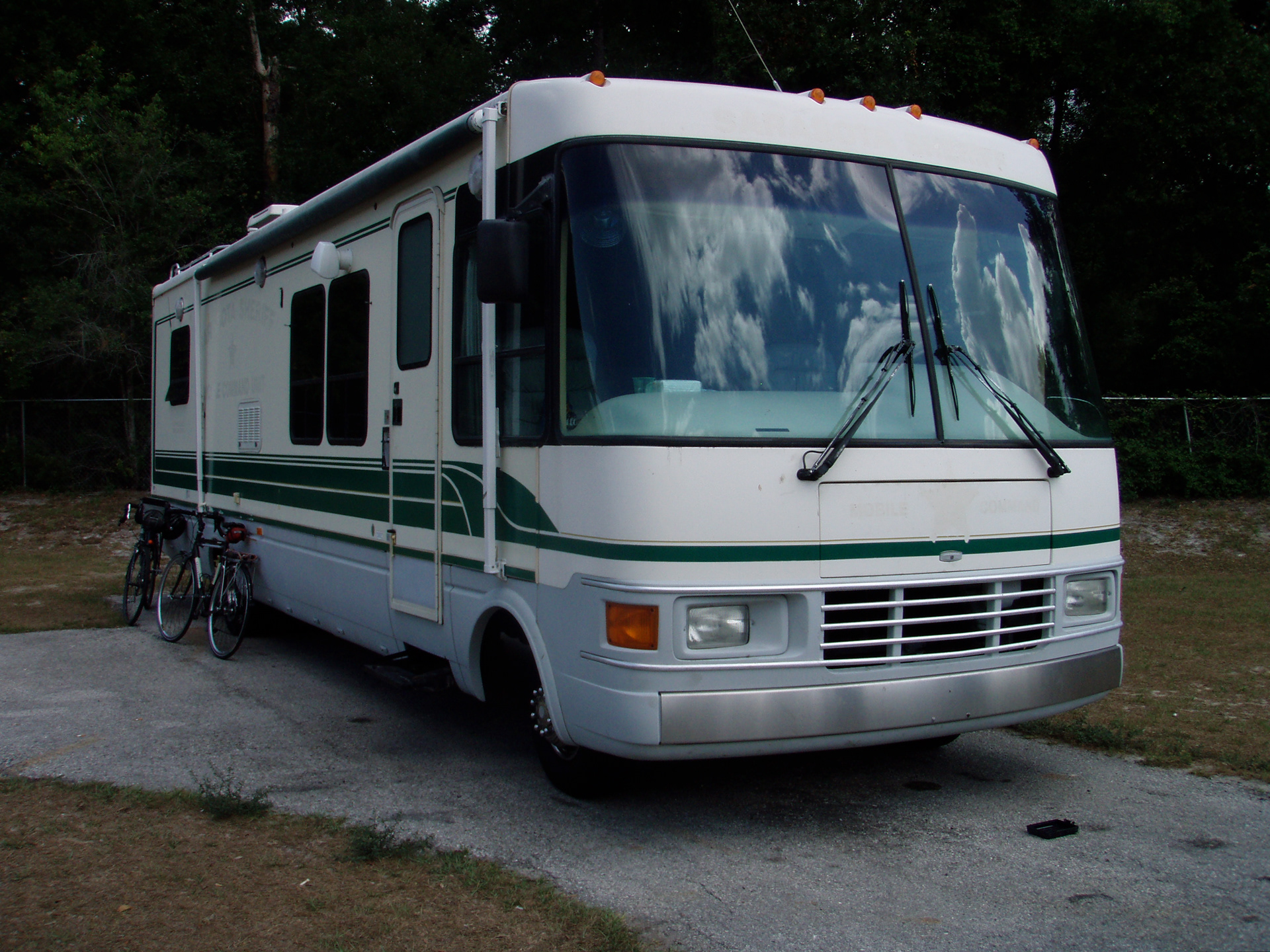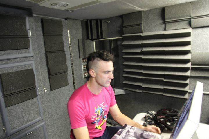 Originally nothing more than a regular old Dolphin RV, it is now a versatile mobile production facility. The extrerior is left mostly untouched so as to remain inconsipicuous on the road but the interior is re-designed to be a fully functional recording and mixing facility. It is also a useful resource for remote location video productions, offering ample storage to transport gear, desk space to flesh out a production office, generator power, a kitchenette, restroom, and the mixing suite can double as an edit bay. Power comes from solar on the roof or an internal gas generator that sips fuel from the same tank as the engine.